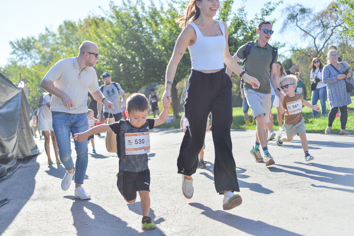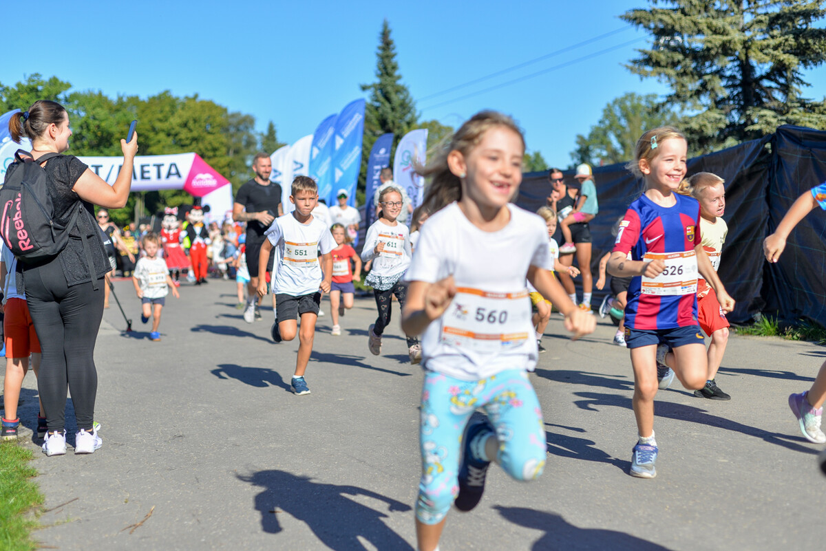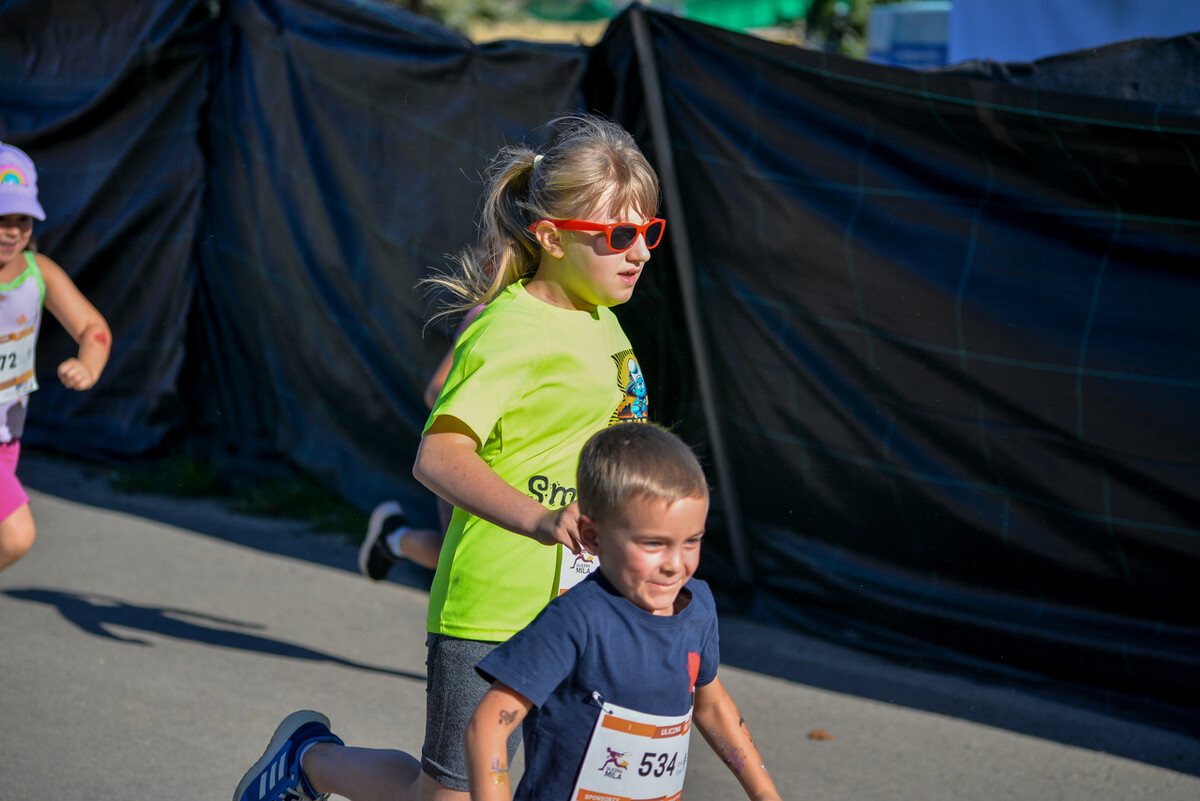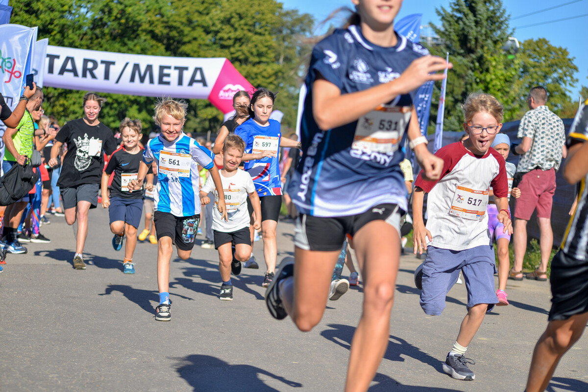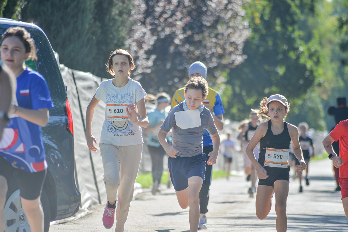 Na miejsce dotarłem niedługo po godzinie 9:00, by zdążyć na biegi dla najmłodszych, dziecięcych uczestników spotkania. Serię biegów dla dzieci rozpoczęto o godzinie 9:30, a młodzi biegacze mierzyli się z dystansami liczącymi po około 100, 200 i 400 metrów. Startowali w kilku kategoriach wiekowych, łącznie odbyły się trzy biegi dla najmłodszych.