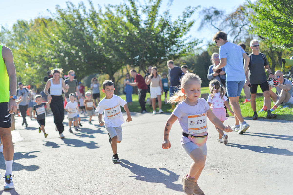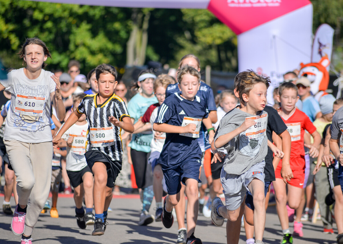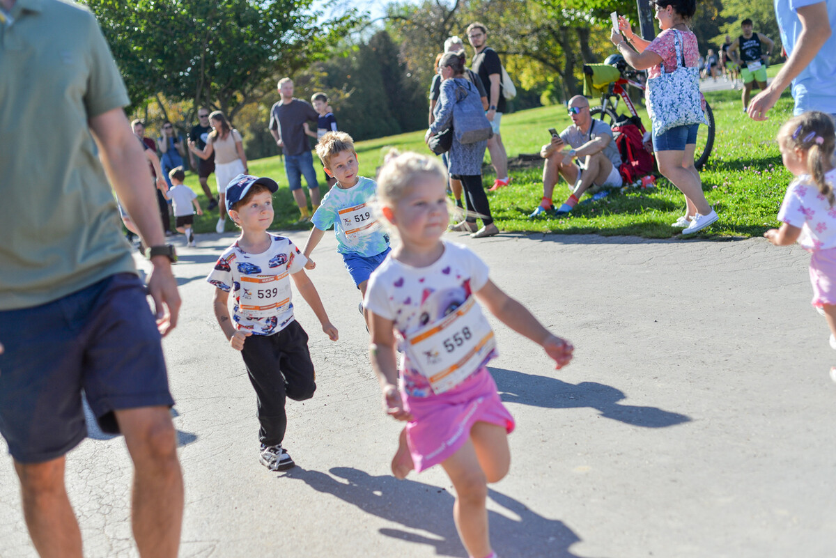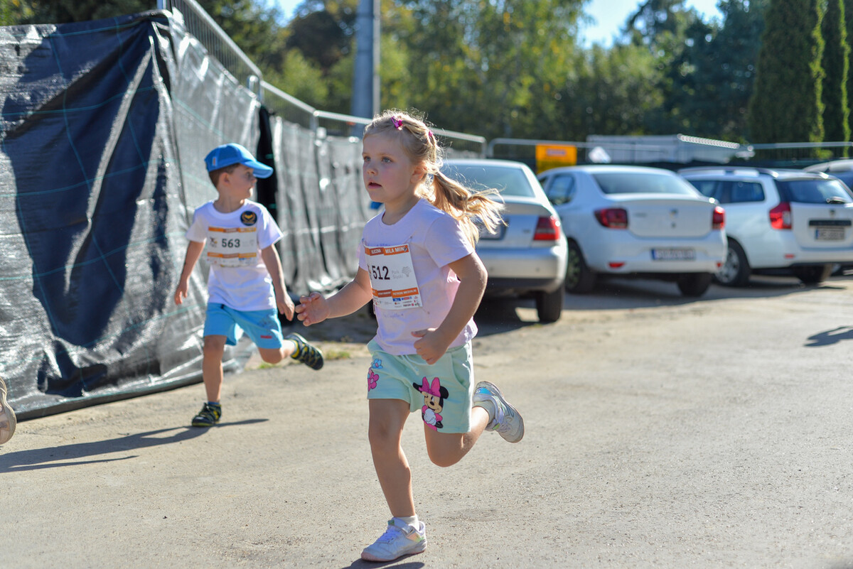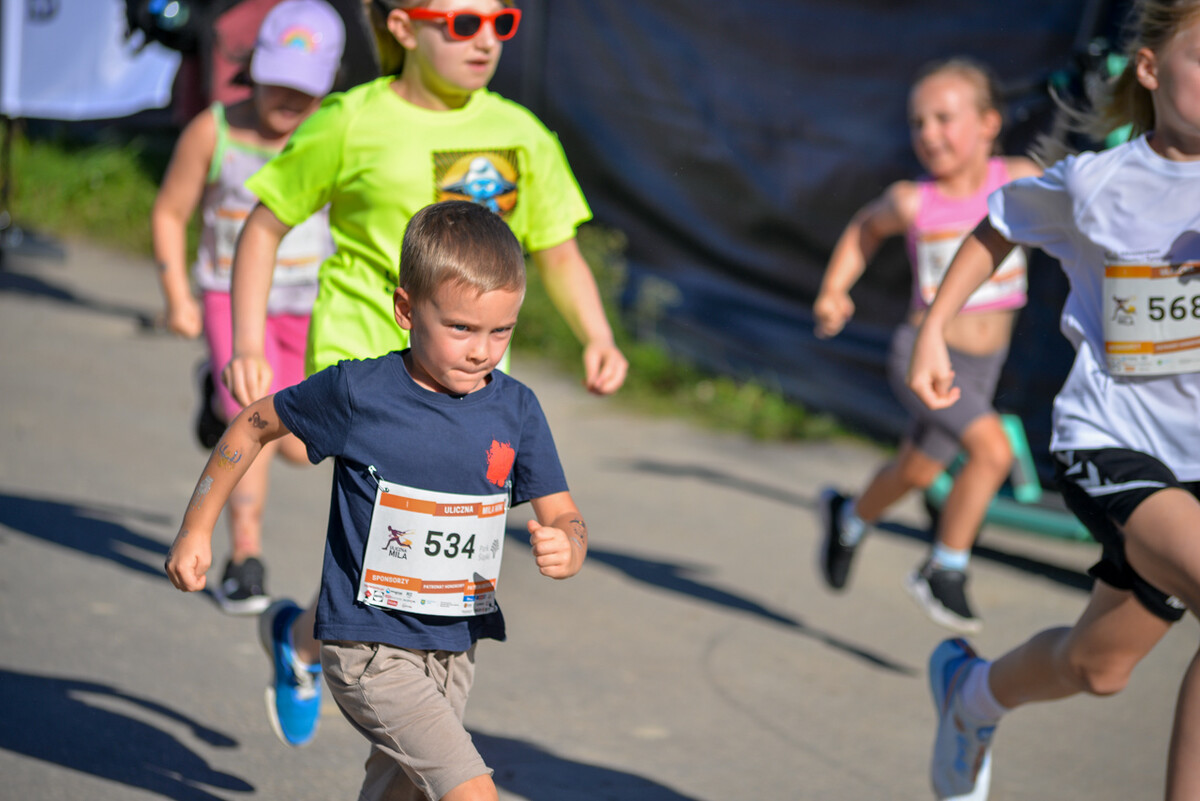 Na miejsce dotarłem niedługo po godzinie 9:00, by zdążyć na biegi dla najmłodszych, dziecięcych uczestników spotkania. Serię biegów dla dzieci rozpoczęto o godzinie 9:30, a młodzi biegacze mierzyli się z dystansami liczącymi po około 100, 200 i 400 metrów. Startowali w kilku kategoriach wiekowych, łącznie odbyły się trzy biegi dla najmłodszych.