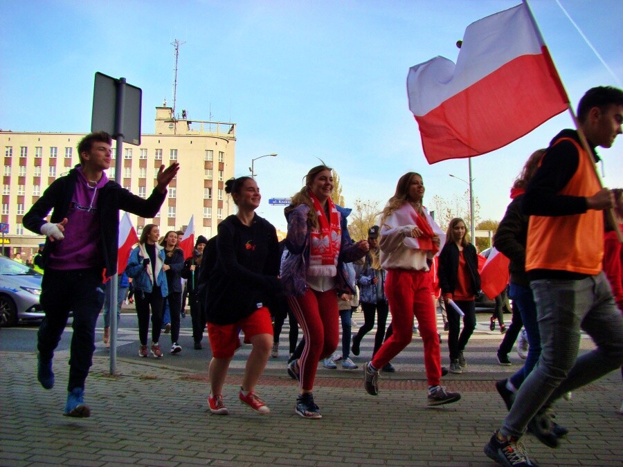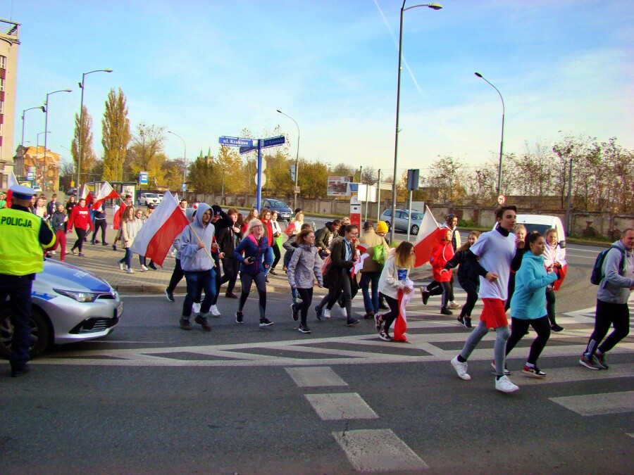 - Nasza historia jest krwią pisana, stąd też taka martyrologia staje się trochę sztampowa na lekcjach historii czy wiedzy o społeczeństwie i trzeba szukać kompromisu. 18 lat temu wymyśliłem, że będziemy wychodzić ze szkoły i zamiast tych szkolnych akademii pokażemy coś innego – miejsca pamięci w naszym mieście, obeliski, pomniki, ulice. Jest to bardziej dynamiczne niż to, co przez wiele lat mieliśmy w szkole. Cieszę się, że każdego roku młodzież przychodzi na ten bieg – mówi Krystian Kazimierczuk.