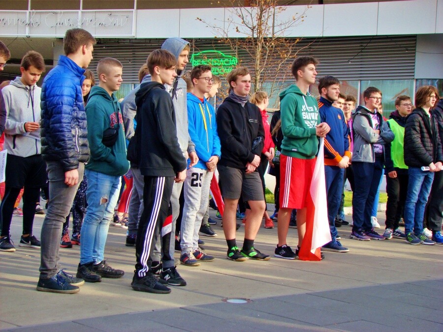 Uczniowie Słowaka i innych chorzowskich szkół pobiegli z Placu Powstańców Śląskich na Rynek. Miejsce startu wybrano nieprzypadkowo, bo w tym roku przypada setna rocznica wybuchu I Powstania Śląskiego, do którego przed startem nawiązał Krystian Kazimierczuk, nauczyciel historii z I LO im. Juliusza Słowackiego i pomysłodawca Biegu Niepodległości. Jak podkreśla zaproponował taką formę obchodów Narodowego Święta Niepodległości, by trafić do współczesnego młodego ucznia.