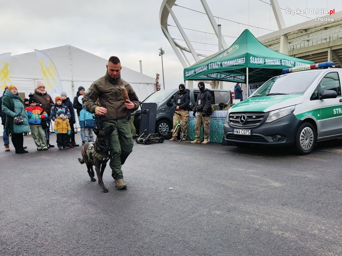 - Z tej okazji na Stadionie Śląskim stanął policyjny namiot. Policjanci prowadzili konkursy z nagrodami, rozmawiali na tematy związane z bezpieczeństwem, opowiadali o swojej codziennej służbie i zachęcali do wstąpienia w nasze szeregi. Dużym zainteresowaniem nie tylko wśród najmłodszych cieszyły się prezentowane policyjne radiowozy. Nie zabrakło również „Sznupka”, który zbierał uściski i pozował do wspólnych fotografii - czytamy na stronie KMP Ruda Śląska.