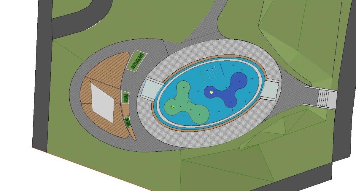 Za niecałe 2 miliony złotych zbudowana zostanie niecka z urządzeniami, strefa wypoczynku, siedziska i ścieżki łączące się z już istniejącymi alejkami. Główną atrakcją będzie strefa wodnej zabawy z kilkunastoma atrakcjami. Ochłody będzie można zaznać dzięki urządzeniom wodnym takimi jak: wulkan, rybka, dżdżownica, tunel czy żabka.