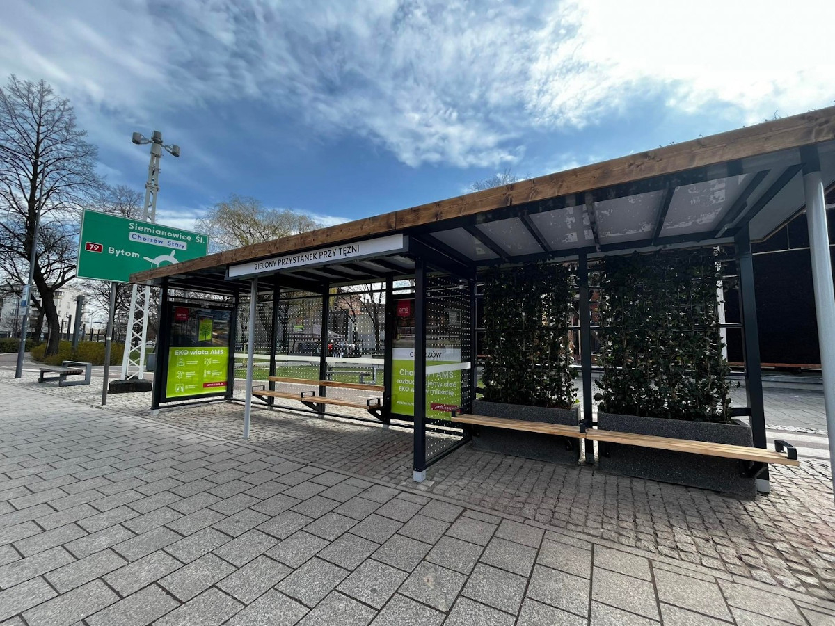 Na wspólny projekt Miasta Chorzów i AMS – lidera reklamy Out-of-Home w Polsce – składa się system wiat z zielonymi dachami.