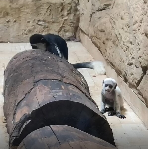 Młode pojawiło się również w stadzie gerez abisyńskich. Młode tych małp po przyjściu na świat wyróżniają się białym ubarwieniem, które z czasem ustępuje miejsca charakterystycznej, czarnej barwie. Młodym opiekuje się całe stado.