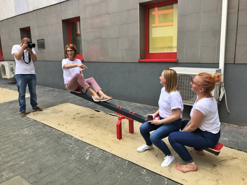 Szpitalne pomieszczenia i dziedziniec zmieniły się dzięki akcji „Strefa Rodzica. Budimex Dzieciom”. W pracach pomagała aktorka Agnieszka Grochowska i wolontariusze z Budimexu.