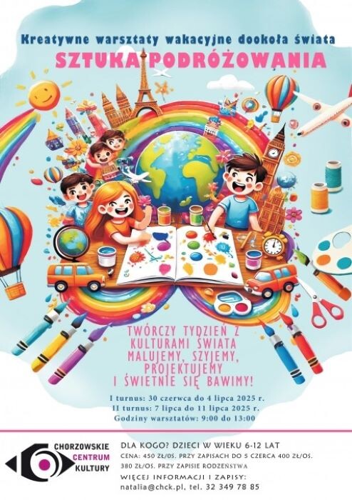 Lato w mieście nie musi być nudne – zwłaszcza w Chorzowie! W te wakacje Chorzowskie Centrum Kultury zaprasza dzieci do wyjątkowej, kreatywnej podróży przez kontynenty, bez konieczności pakowania walizek czy kupowania biletów. Każdy dzień to wizyta w innym zakątku świata, gdzie poprzez sztukę, rękodzieło i zabawę młodzi uczestnicy poznają kulturę, symbole i kolory różnych państw.