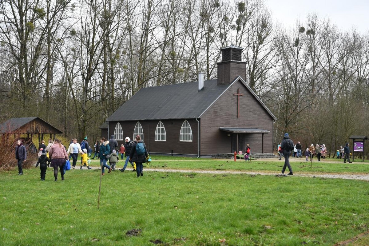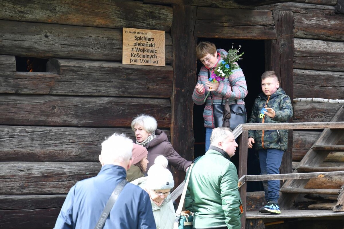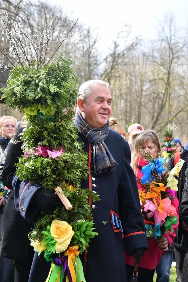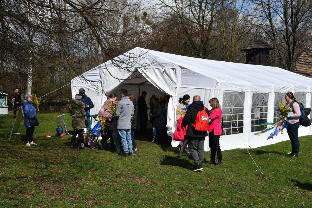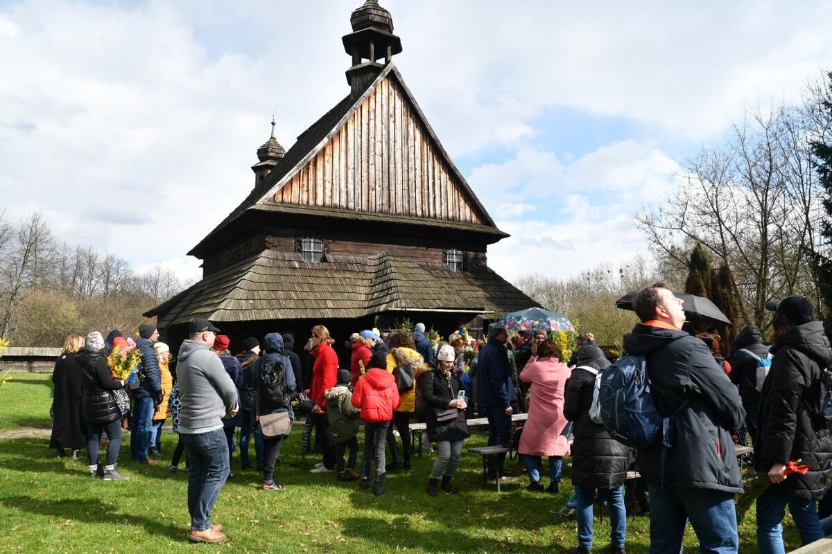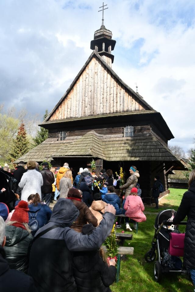Po południu uczestnicy zgromadzili się na uroczystej mszy świętej z poświęceniem palm i wody. Po nabożeństwie wszyscy wzięli udział w barwnym korowodzie z palmami, który przeszedł przez teren skansenu, odtwarzając tradycje związane z Niedzielą Palmową i Wielkim Tygodniem. W trakcie korowodu opowiadano również o dawnych wierzeniach i rytuałach towarzyszących mieszkańcom dawnej wsi w okresie wielkanocnym.