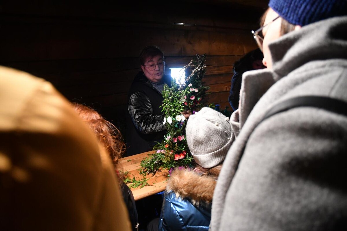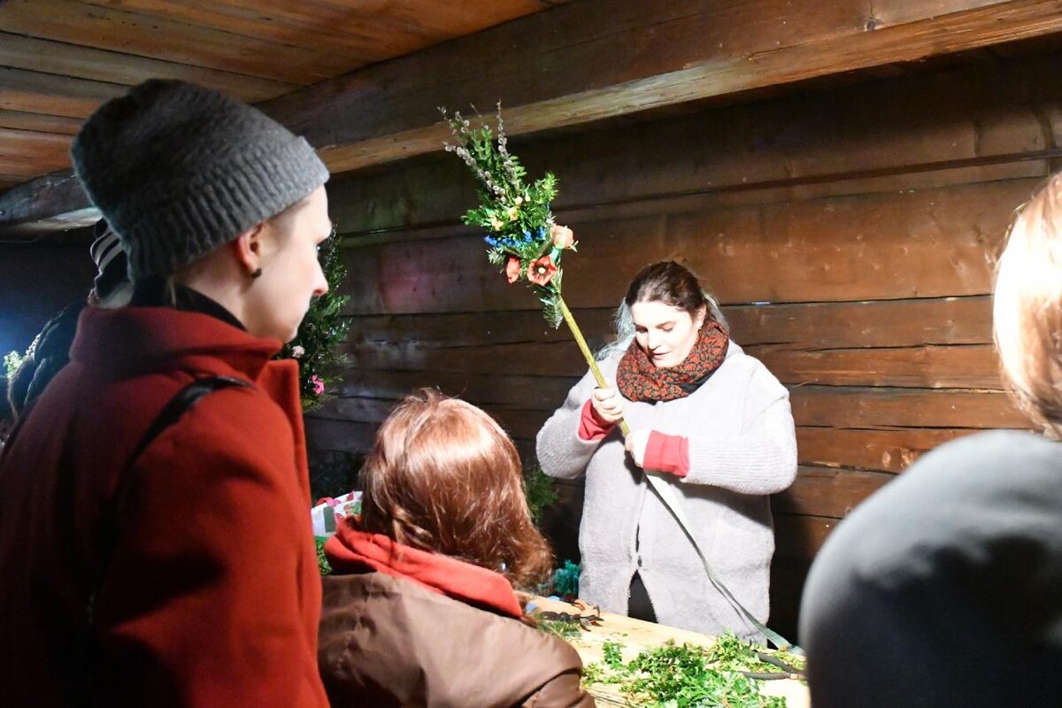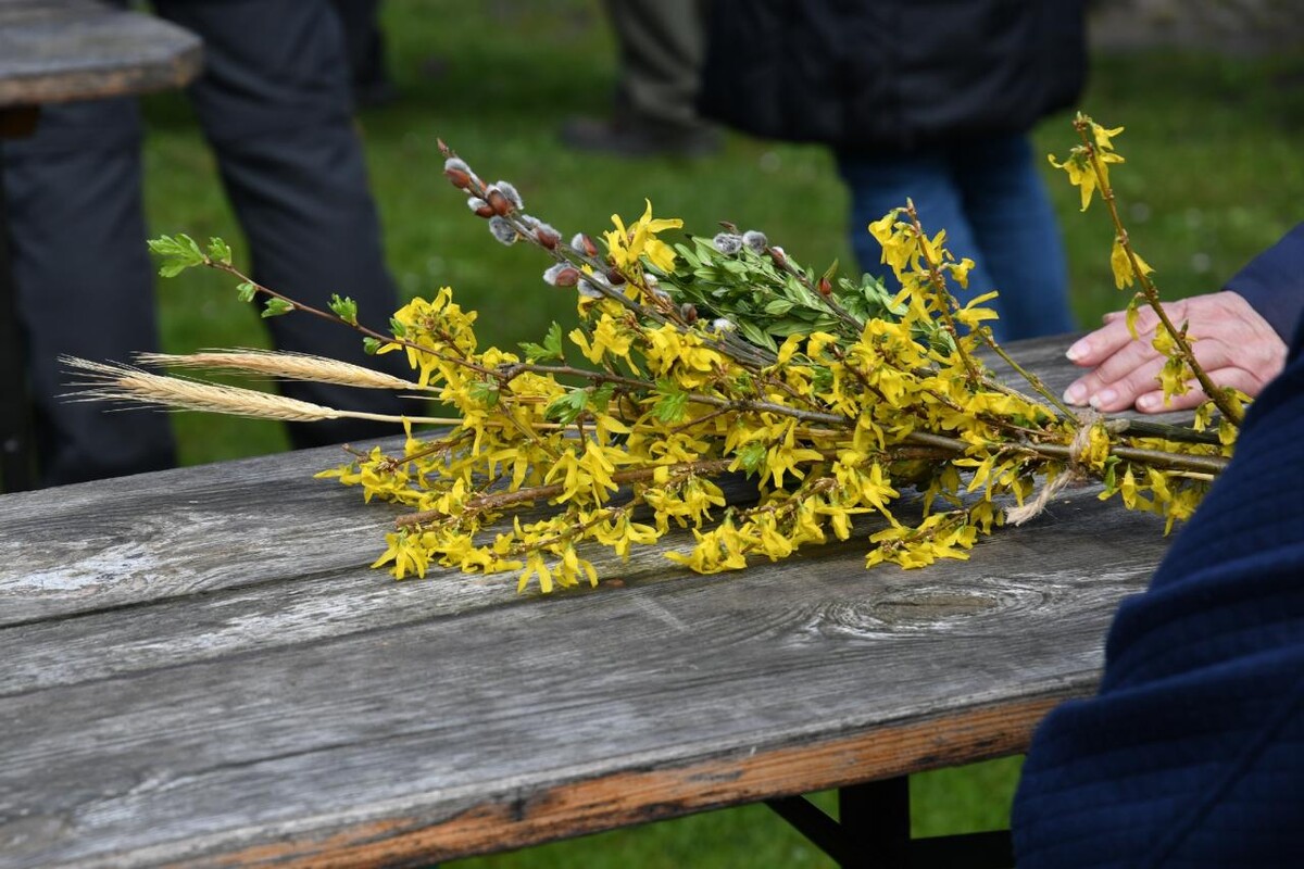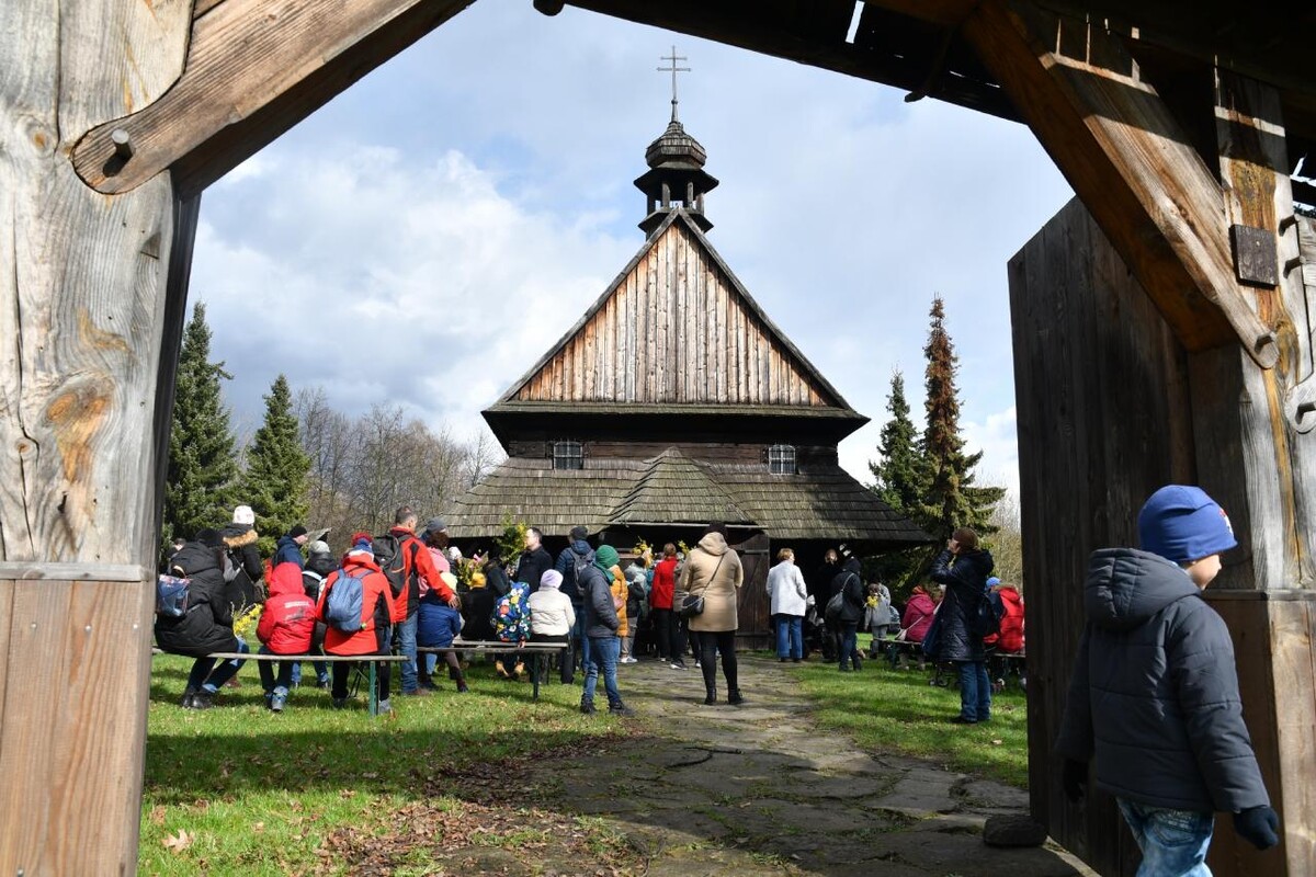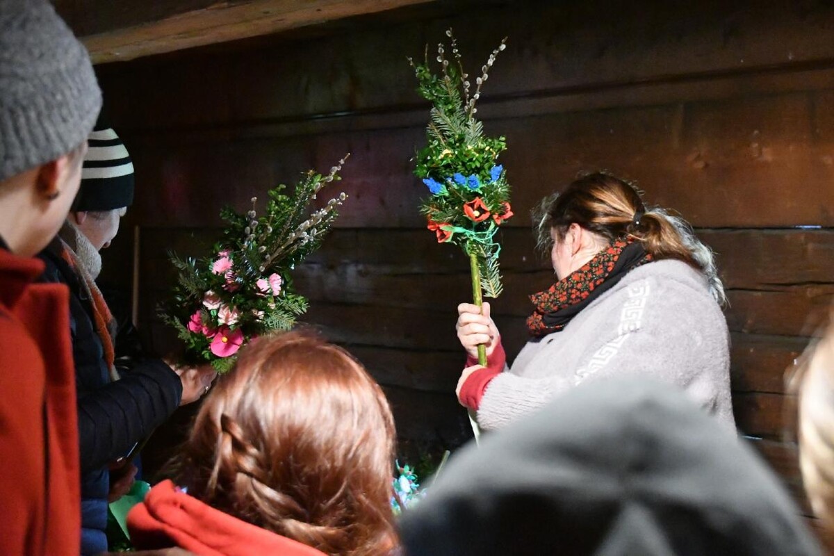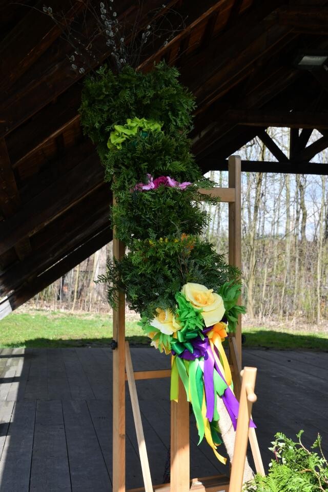 Po południu uczestnicy zgromadzili się na uroczystej mszy świętej z poświęceniem palm i wody. Po nabożeństwie wszyscy wzięli udział w barwnym korowodzie z palmami, który przeszedł przez teren skansenu, odtwarzając tradycje związane z Niedzielą Palmową i Wielkim Tygodniem. W trakcie korowodu opowiadano również o dawnych wierzeniach i rytuałach towarzyszących mieszkańcom dawnej wsi w okresie wielkanocnym.