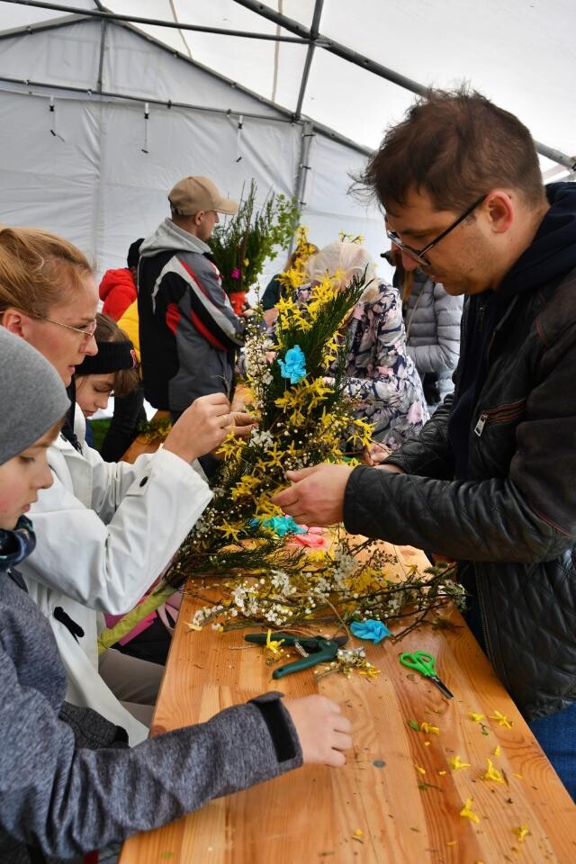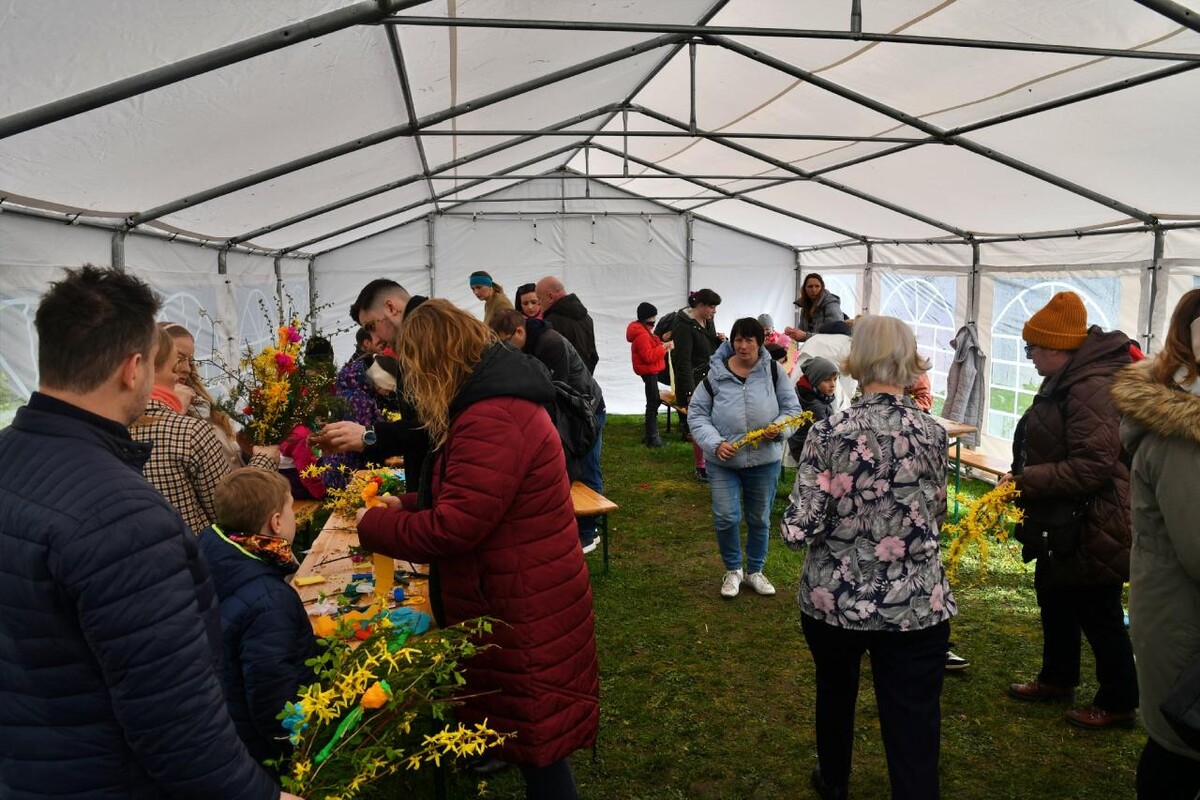 Dzień rozpoczął się od radosnych zabaw dla najmłodszych, którzy wzięli udział w poszukiwaniu zajączka oraz w warsztatach zdobienia jajek. Następnie odbyły się warsztaty tworzenia palm wielkanocnych, które cieszyły się dużym zainteresowaniem zarówno wśród dzieci, jak i dorosłych.