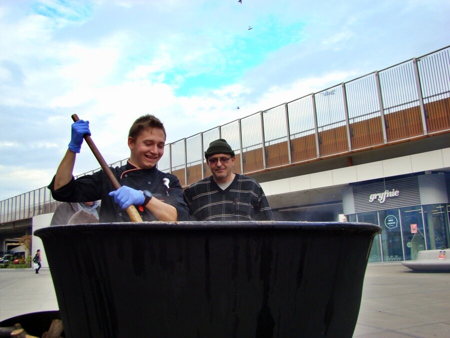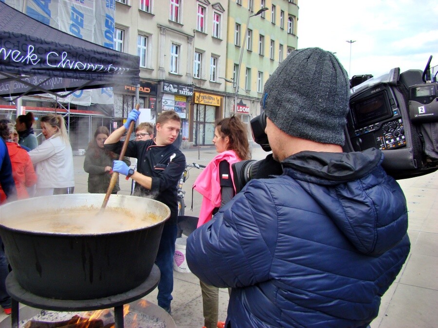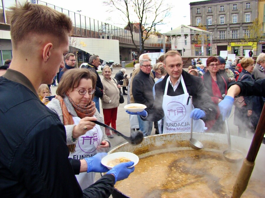 Wielkie gotowanie żuru i dzielenie się nim z potrzebującymi na chorzowskim Rynku, to wspólna inicjatywa miasta oraz fundacji Wolne Miejsca.