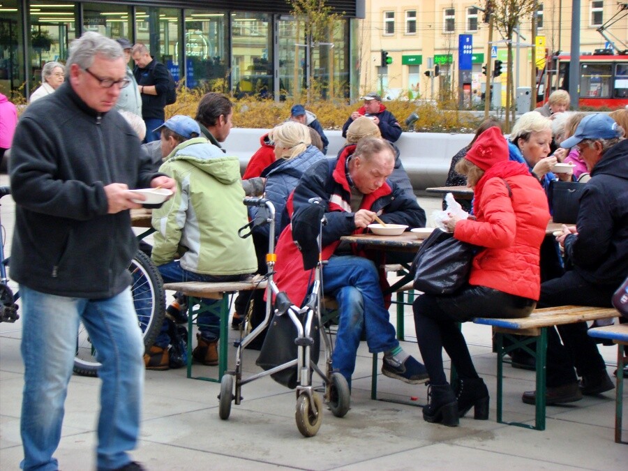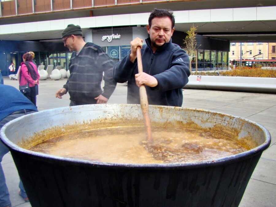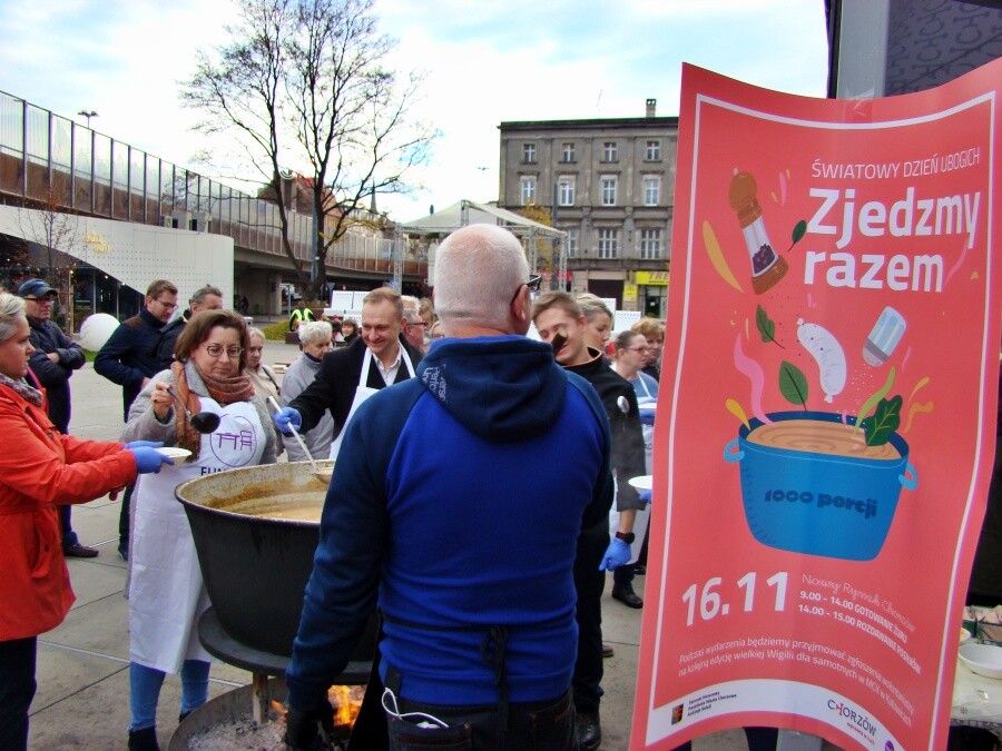 Ogromny gar i wielkie gotowanie na Rynku w Chorzowie. Rozdano tysiąc porcji żuru! Akcję zorganizowano z okazji, przypadającego 17 listopada, Światowego Dnia Ubogich oraz po to, by przypomnieć o, największej w regionie, Wigilii dla Samotnych.