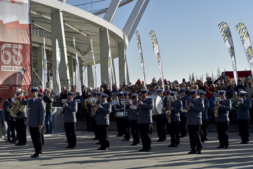 Bramy Stadionu otwarto o 10:30, a wydarzenie rozpoczęły występy orkiestr górniczych, Wojska Polskiego oraz Śląskiej Policji. Zaprezentowały one zarówno utwory patriotyczne, jak i niecodzienne aranżacje popularnych hitów. Następnie uczestnicy wraz z zespołem "Mały Śląsk" odśpiewali uroczyście hymn Polski. Marszałek Województwa Śląskiego Jakub Chełstowski wręczył na scenie nagrody Triady Biegowej Powstań Śląskich. Wyróżnienia otrzymały osoby, które w ciągu ostatnich trzech lat przebiegły łącznie minimum 25 kilometrów w ramach imprez biegowych zaliczanych do Triady. Dodatkową atrakcją był pokaz lotniczy ORLEN Grupy Akrobacyjnej Żelazny.