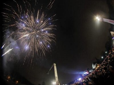 Zaczęło się niewinnie: na wodzie pokazało się świetlne, czerwone rzymskie XX – symbol, tegorocznej edycji WOŚP, wokół – fontanna fajerwerków. Potem odbył się niezwykły pokaz sztucznych ogni. Co rusz w górę wylatywały białe strumienie, niebo rozbłysło.