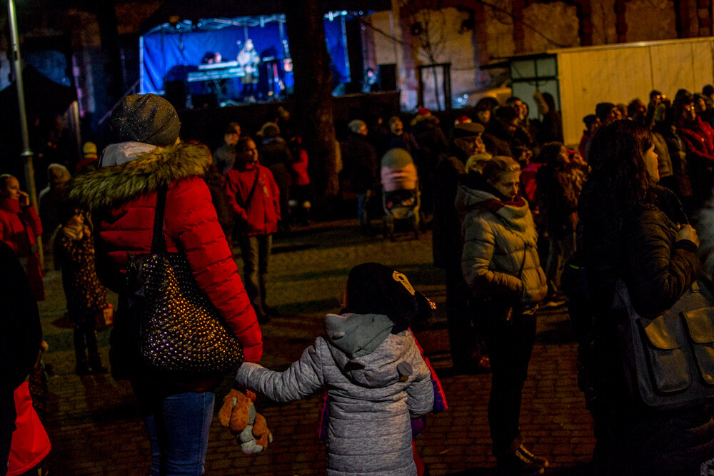 Kolorowy tłum z bombkami i oprawą muzyczną, w asyście służb mundurowych - policji i straży miejskiej - oraz Świętego Mikołaja, przeszedł spod poczty na teren Parku Hutników, aby wspólnie zawiesić ozdoby na kilkumetrowym, świątecznym drzewku.