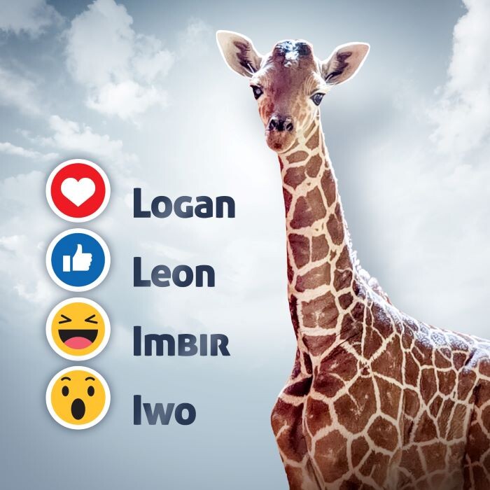 Śląski Ogród Zoologiczny w Chorzowie przygotował cztery propozycje imienia dla nowo narodzonej żyrafy. Głosowanie odbywa się na oficjalnym profilu ogrodu na Facebooku, a udział w nim może wziąć każdy. Wystarczy zareagować odpowiednią emotką pod specjalnym postem. Wybierać można spośród imion: