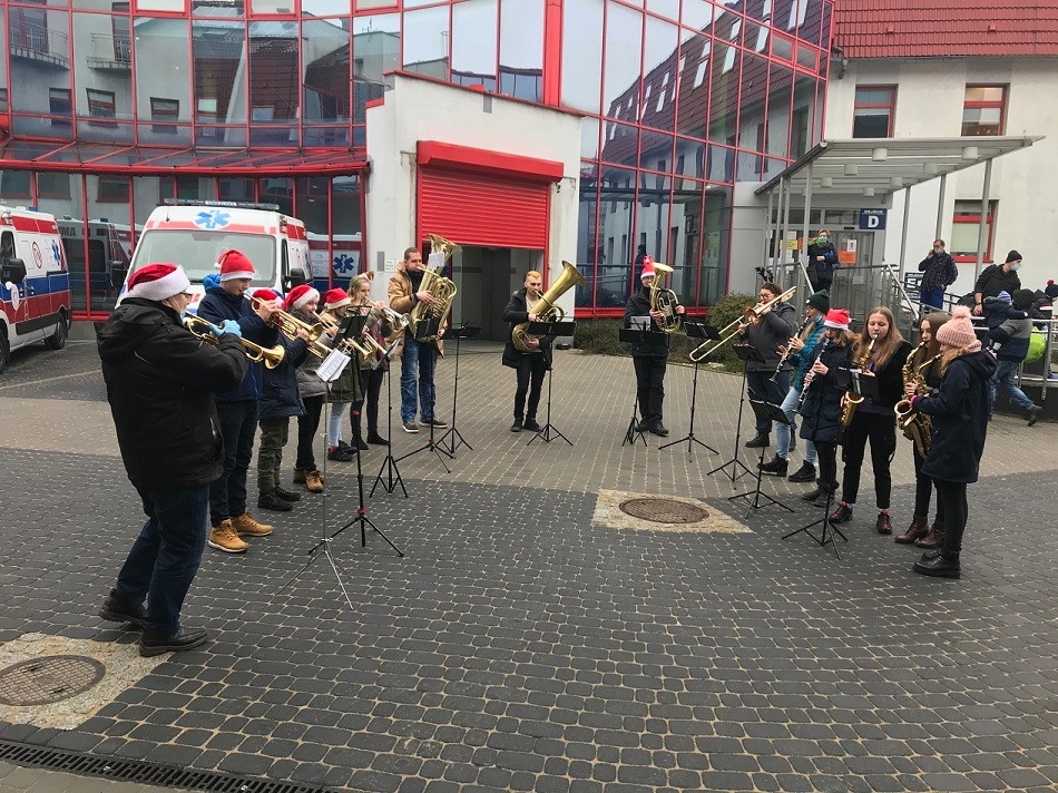 Muzycy z Orkiestry Dętej Sanktuarium św. Floriana, grający pod dyrekcją Krzysztofa Wyciślika nie wahali się nawet przez moment – zdecydowali się umilić święta dzieciakom, które przez swój zły stan zdrowia muszą pozostać w szpitalu.