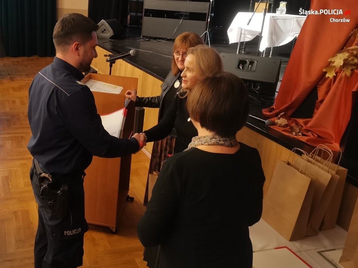 W czwartek 1 grudnia br. w Młodzieżowym Domu Kultury w Chorzowie miało miejsce spotkanie Zespołu Interdyscyplinarnego. Zgromadzenie, które odbyło się pod nazwą „Uzależnienie a przemoc” było okazją do podsumowania działań zespołu w tym roku, i przedstawienia planów na przyszłość. Jednym z elementów spotkania był wykład na temat deficytu bliskości u najmłodszych. Podczas zebrania zostały również wręczone nagrody dla wyróżniających się pracowników chorzowskich instytucji, działających w obszarze przeciwdziałania przemocy w rodzinie. Pochwały otrzymało trzech funkcjonariuszy pracujących na co dzień w komisariatach w naszym mieście. Wyróżnienia otrzymali asp. szt. Adam Kościelny oraz mł. asp. Michał Wilmański z chorzowskiej „jedynki”. Z II komisariatu nagrodzony został sierż. szt. Dariusz Rybak. Wymienieni policjanci zostali docenieni za pracę na rzecz osób dotkniętych przemocą w rodzinie. Funkcjonariusze w codziennej służbie często spotykają się z domową przemocą, szczególnie zauważalne jest to w pracy dzielnicowych.
