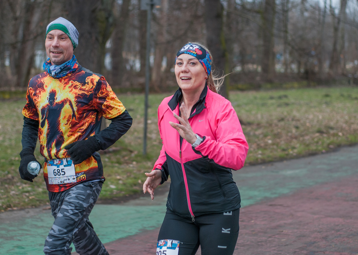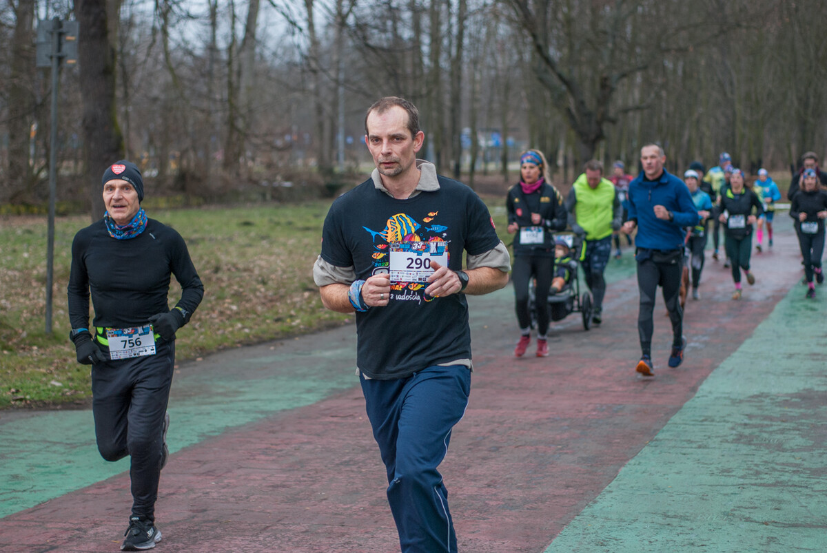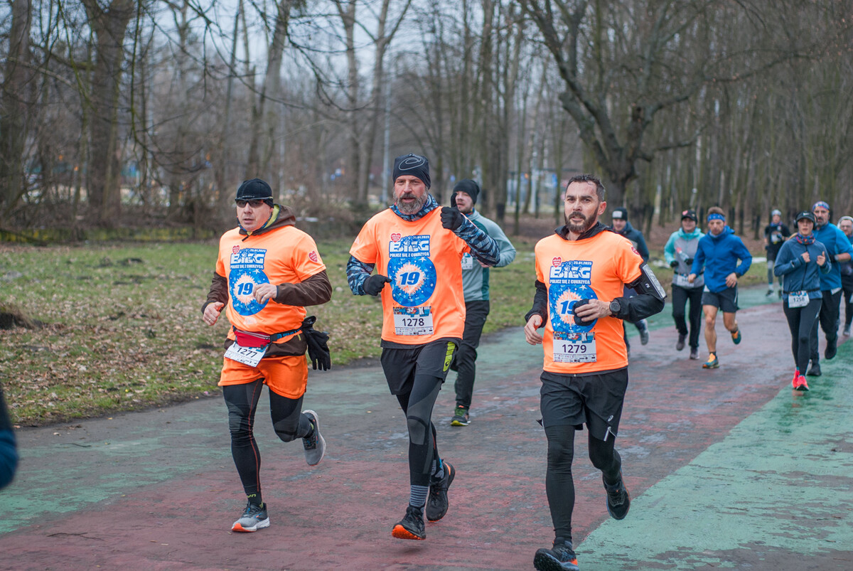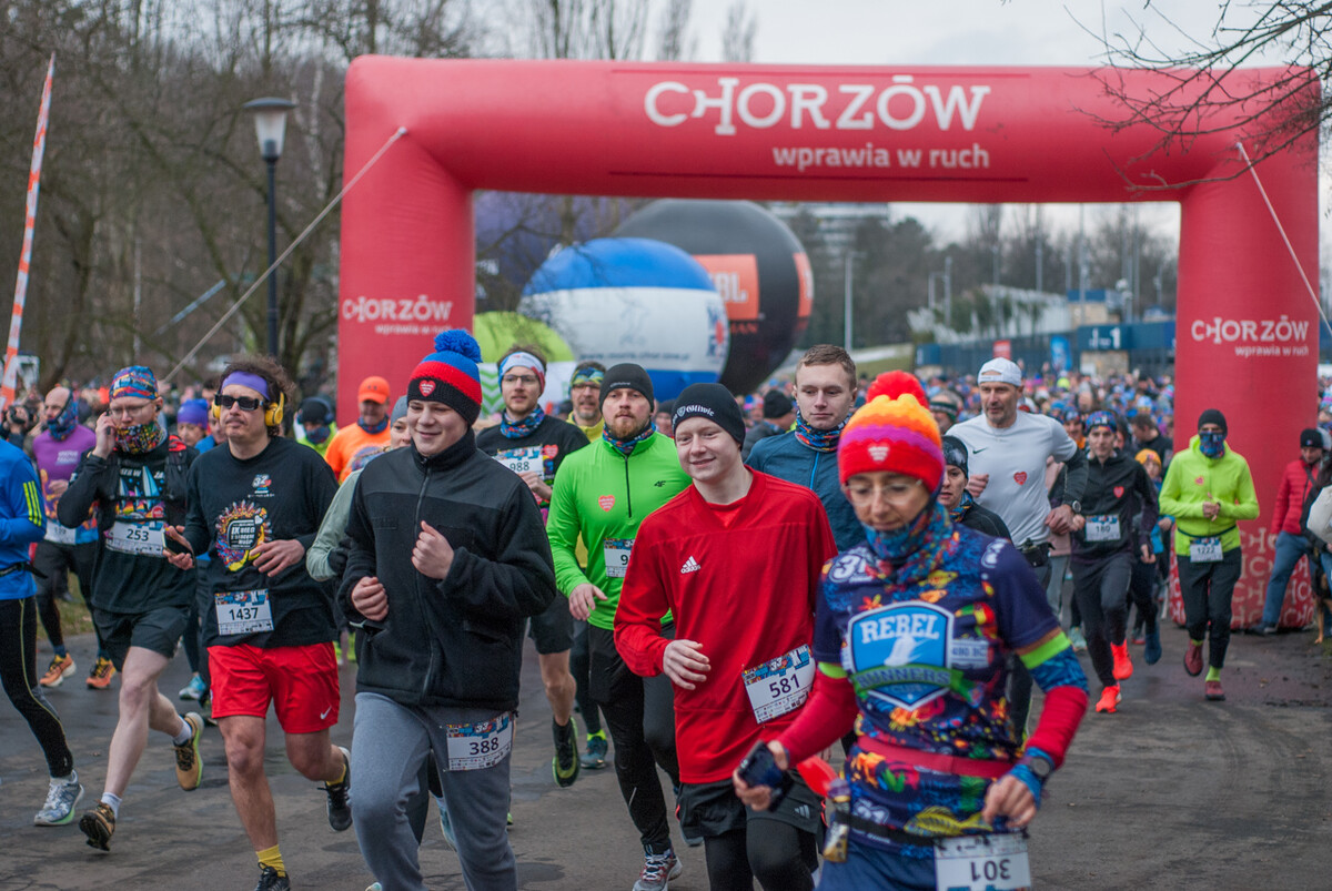 Równo o godzinie 12:00 około półtora tysiąca zawodników ruszyło w kilku kilometrową trasę, prowadzącą alejkami Parku Śląskiego. Mimo chłodu i częściowo oblodzonej trasy najlepsi zawodnicy byli na mycie w ciągu niecałych 20 minut! Kolorowy tłum dosłownie zalał trakty dawnego WPKiW. Dystans do pokonania nie był duży, liczył 5 kilometrów, ale dla chętnych była opcja drugiego okrążenia.