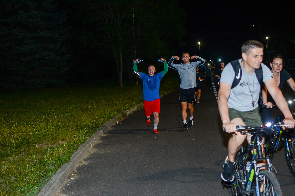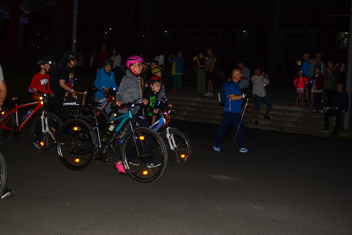 Na starcie tłum biegaczy, kolarzy, w każdym wieku i każdej płci. Biegli dorośli, dzieci, seniorzy, przetruchtali, pojechali na rowerach, hulajnogach, w wózkach dziecięcych i na wózkach inwalidzkich. I niemal każdy miał ze sobą co najmniej jedną latarkę - czołową lub nasobną. Liczona siedem kilometrów trasa z góry musiała wyglądać jak wielka girlanda świetlna.