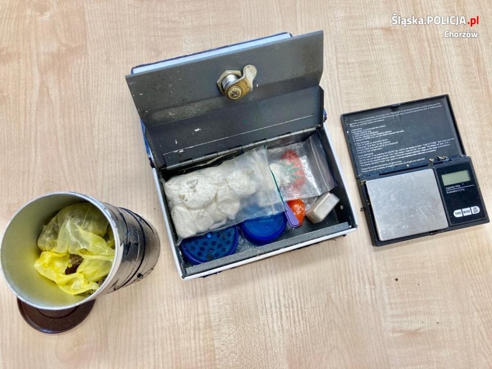 W niedzielę wieczorem mundurowi z chorzowskiej drogówki zatrzymali do kontroli kierującego motorowerem. Mężczyzna od samego początku był bardzo pobudzony, nie potrafił sensownie odpowiadać na pytania stróżów prawa. W pewnym momencie 33-latek odepchnął kontrolującego go policjanta i zaczął uciekać. Szybko jednak został zatrzymany i obezwładniony. Przeszukanie wyjaśniło, co było powodem takiego zachowania. Mężczyzna miał przy sobie marihuanę i amfetaminę. Narkotyki znaleziono również w jego mieszkaniu. Kryminalni zabezpieczyli ponad 630 działek dilerskich amfetaminy i przeszło 110 g marihuany. 33-latek usłyszał już zarzuty. Za posiadanie znacznych ilości środków odurzających grozi mu kara do 10 lat więzienia.