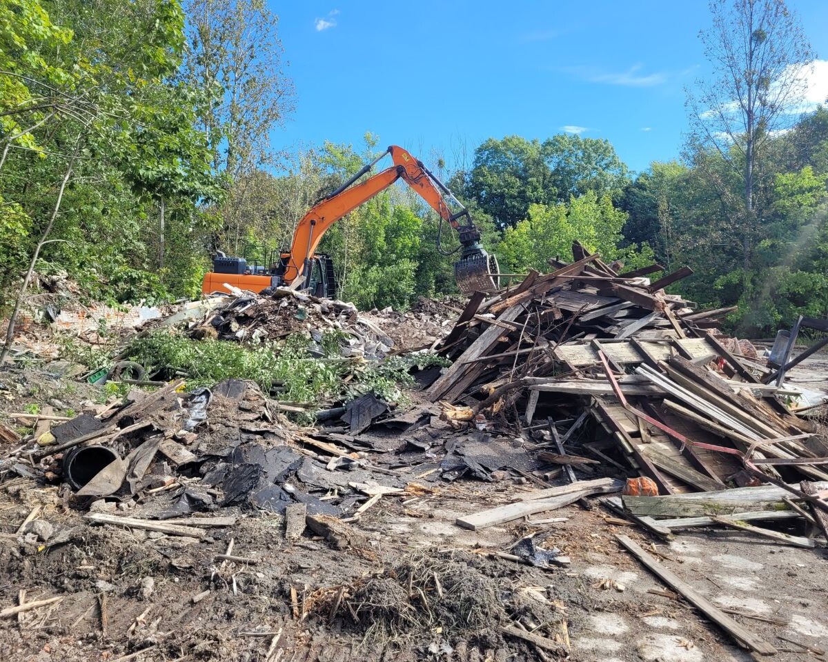 W ramach prac usunięto zniszczone obiekty, w których znajdowały się niebezpieczne materiały, w tym azbest. Wszystkie działania zostały przeprowadzone zgodnie z zasadami bezpieczeństwa i ochrony środowiska. Dzięki temu teren został oczyszczony i odpowiednio przygotowany pod kolejne etapy budowy.
