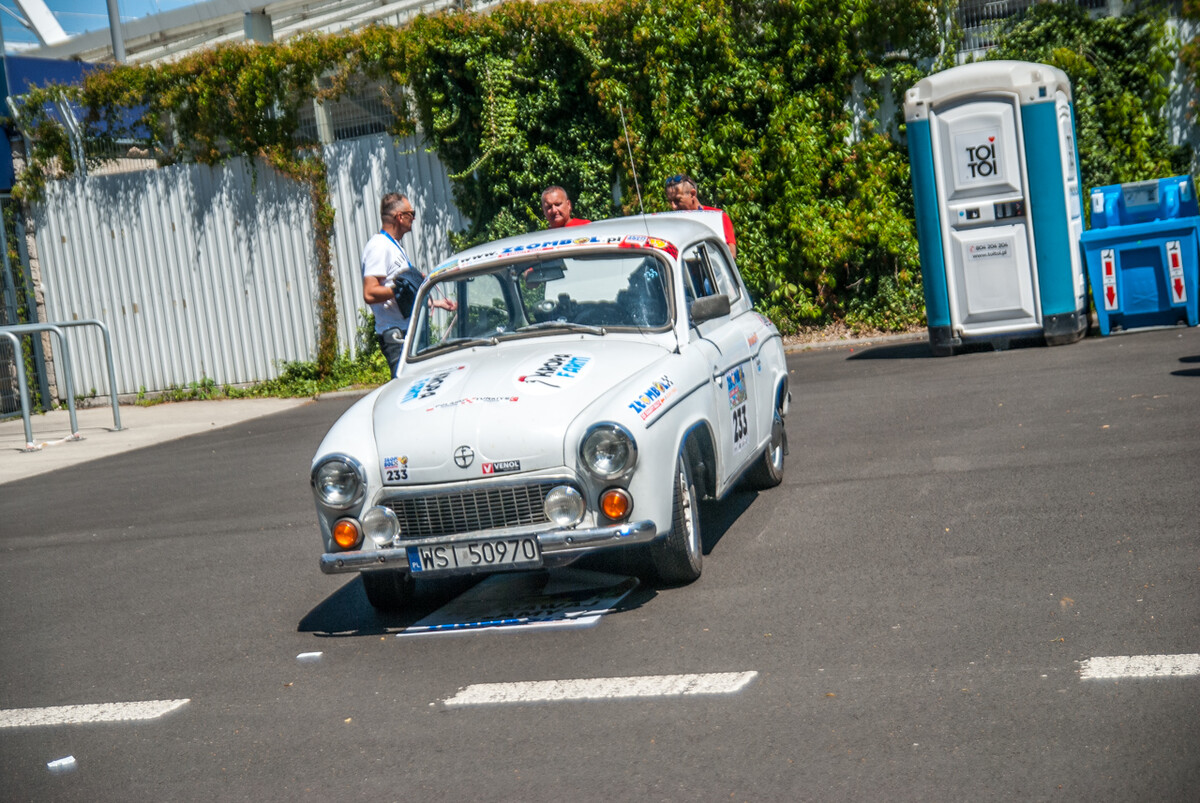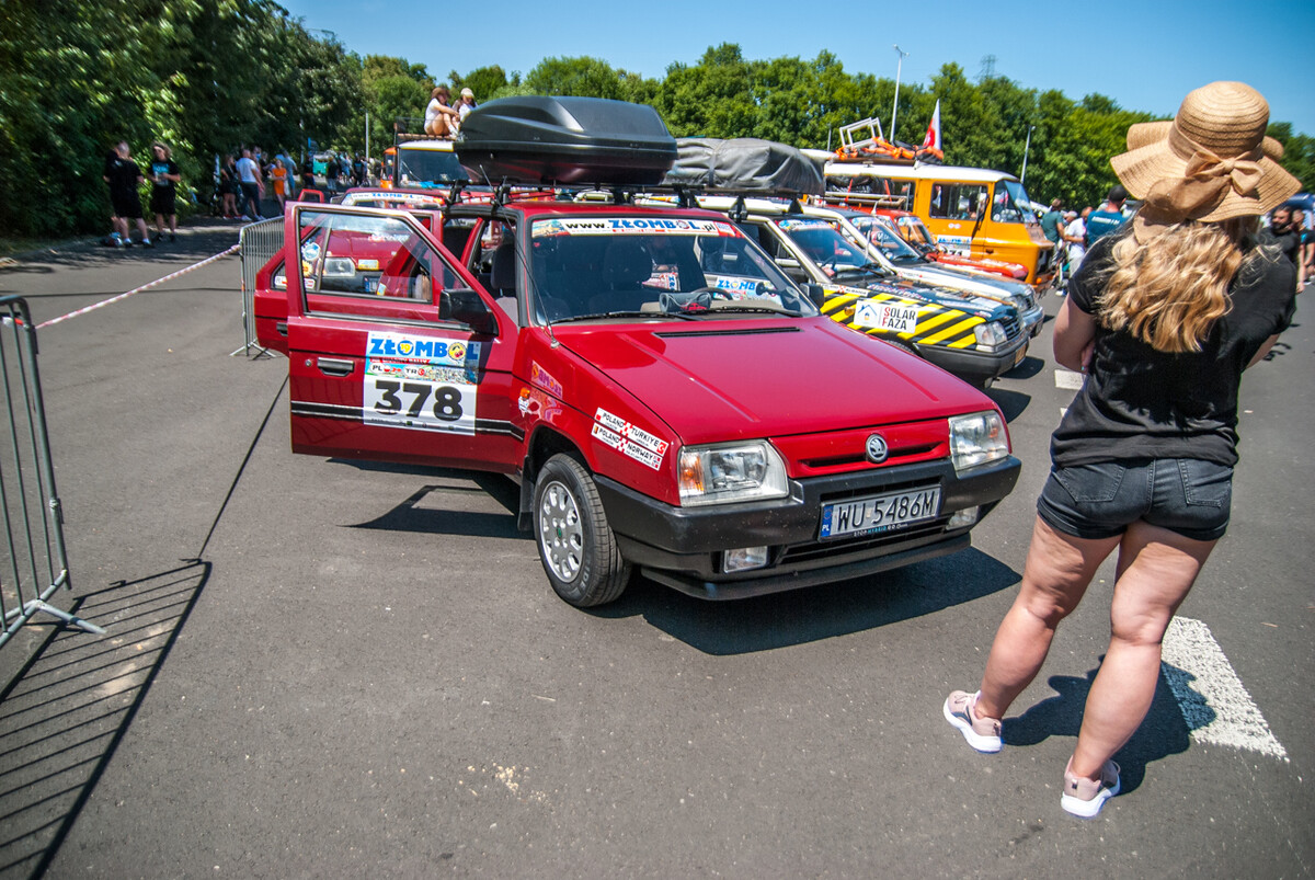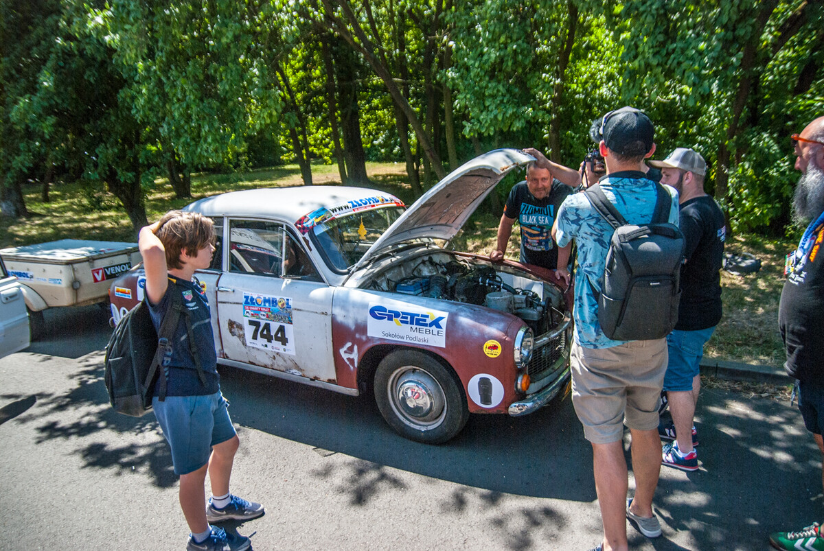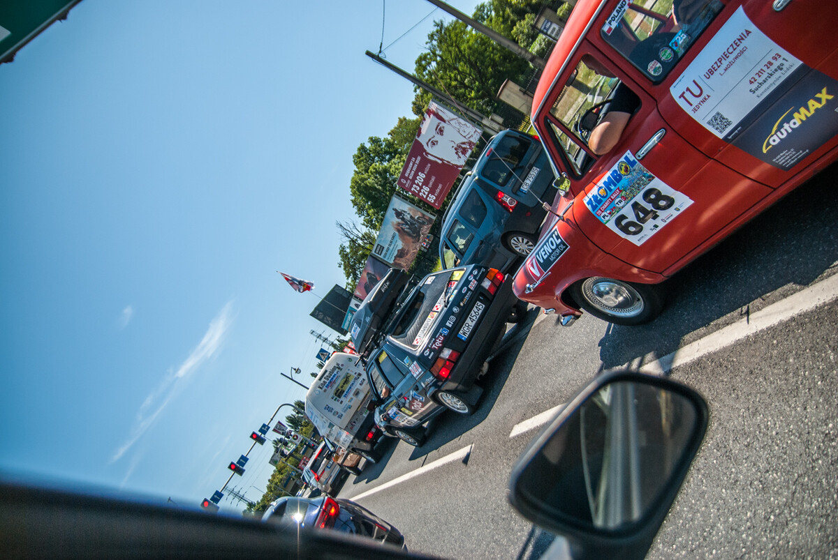 Ryk, warkot, klekot silników mieszał się z muzyką, okrzykami, pozdrowieniami setek widzów, a także wesołymi komentarzami prowadzącego imprezę. Na miejscu zastaliśmy morze Polonezów, Favoritek, leciwych Fiatów 125, Lublinków, nieco mniejsze ilości Żuków, Nysek i innych ciekawych pojazdów z tak zwanej minionej epoki. Furorę robiła terenowa “Buchanka”, Wartburg kombi, Polonez będący niegdyś samochodem pogrzebowym, a także Maluchy, pięknie odrestaurowany Trabant, ciekawa Skoda 105 i pewna wiekowa Łada, na której dachu zamontowano klimatyzację zdjętą z kampera.