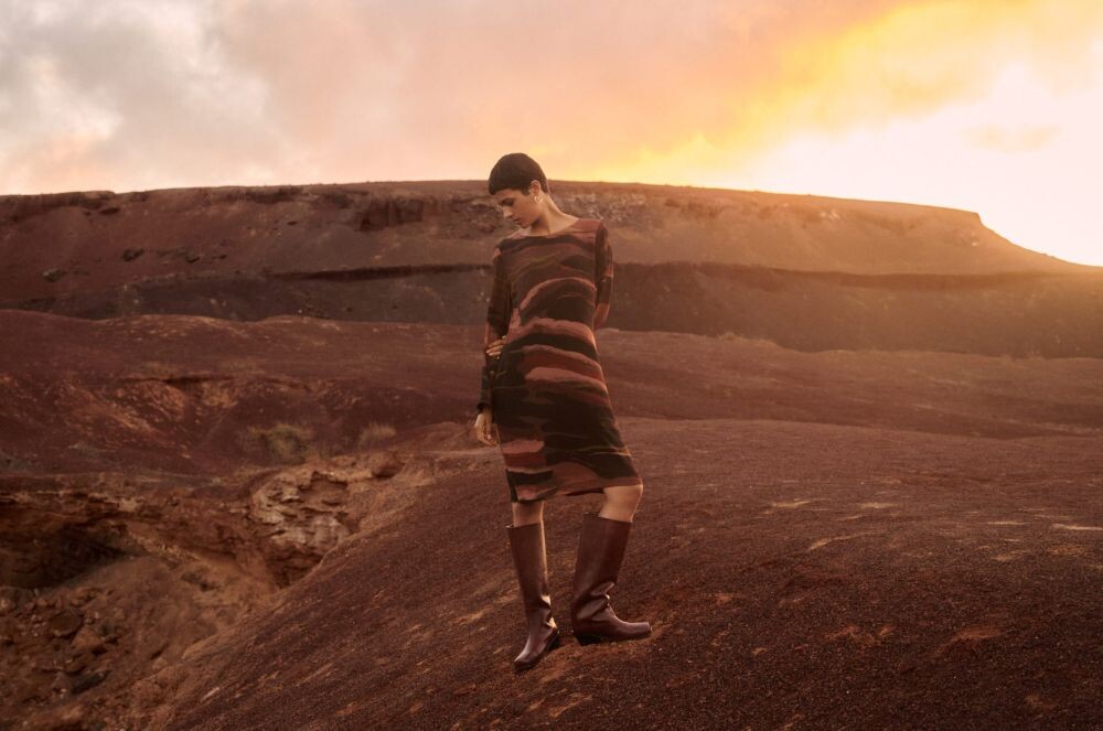 Kolekcja została sfotografowana na Fuerteventurze – hiszpańskiej wyspie o surowym, wulkanicznym krajobrazie. Tam, gdzie ziemia rozgrzana słońcem spotyka się z niebem bez granic, LAWA odnalazła swoje naturalne tło. Bez zbędnej scenografii, bez reżyserii – wystarczyło stanąć w przestrzeni, która mówi tym samym językiem: językiem ciszy, mocy, obecności.