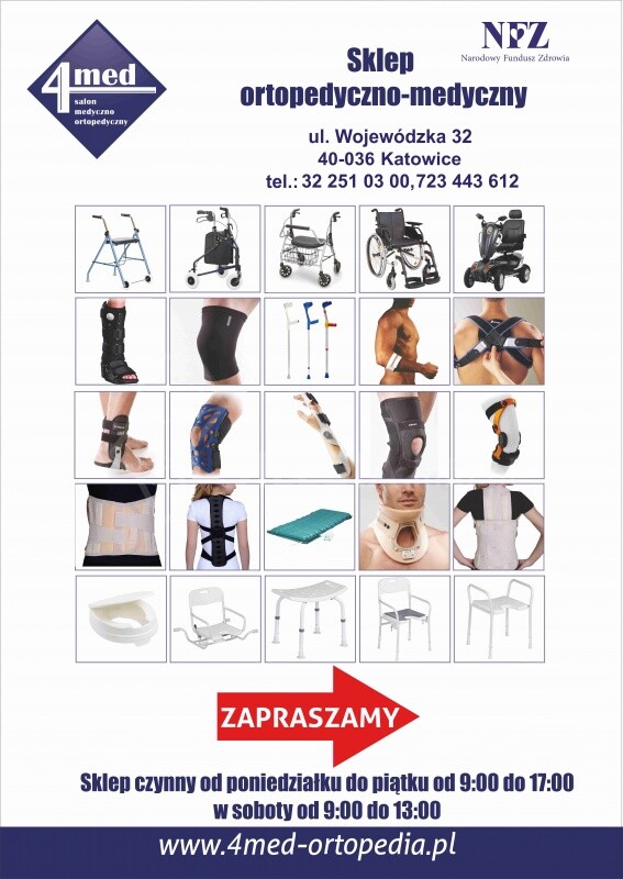 4MED to sieć salonów medyczno-ortopedycznych. W działaniach za priorytet stawiamy sobie stanie się perfekcyjnym dystrybutorem sprzętu ortopedycznego i rehabilitacyjnego. Cel ten osiągamy dzięki szerokiej ofercie, profesjonalnej obsłudze pacjentów i codziennym poszukiwaniom nowych możliwości. Cenimy sobie bezpośredni kontakt z Klientem. Pozwala to nam na dostosowanie się do indywidualnych potrzeb pacjenta poczynając od badania aż po wybór sprzętu i zaopatrzenie.